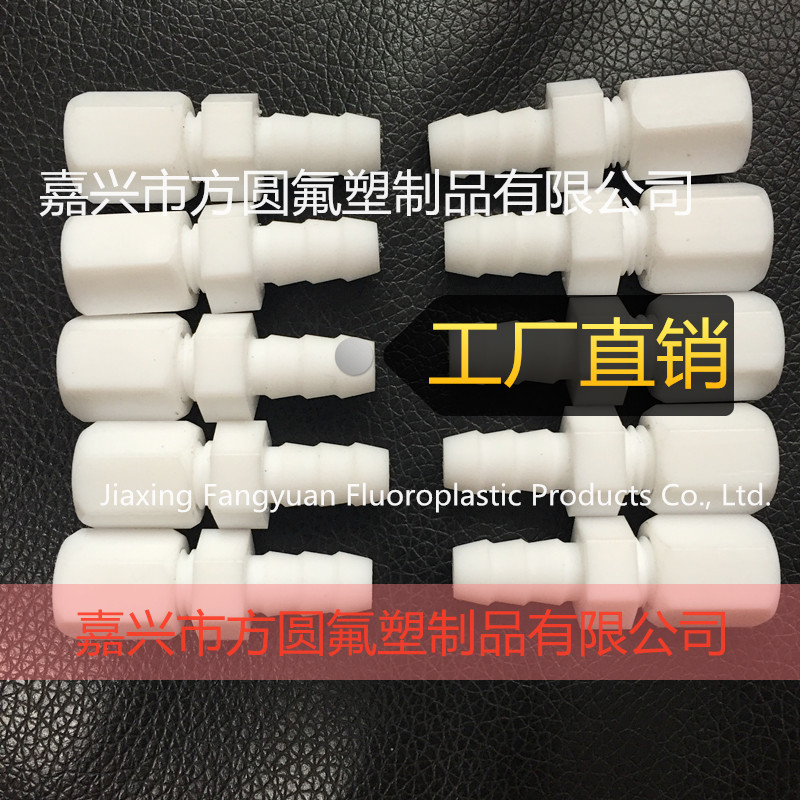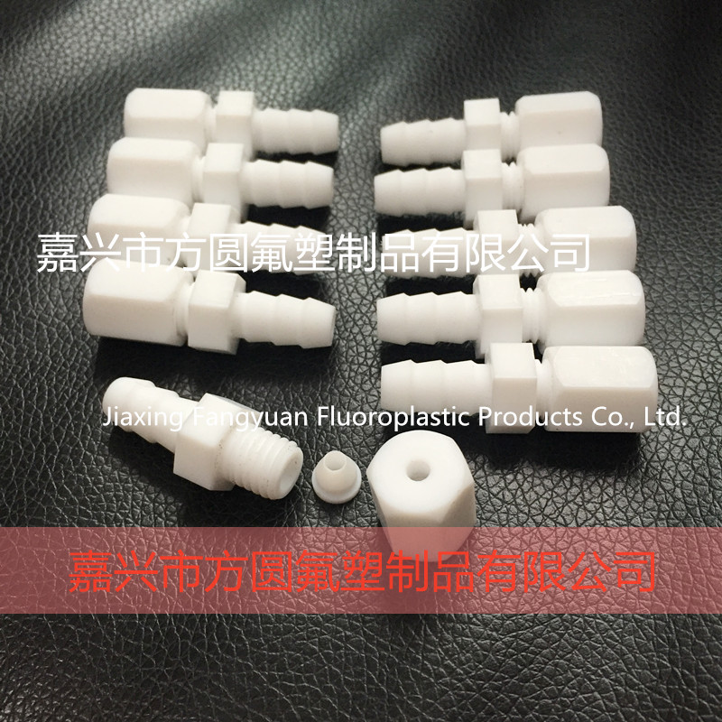 聚四氟乙烯接頭根據(jù)不同的連接形式,可分為卡套接頭,擴口接頭,絲扣接頭,寶塔接頭,穿板接頭等,可根據(jù)您的需求進行加工定制。